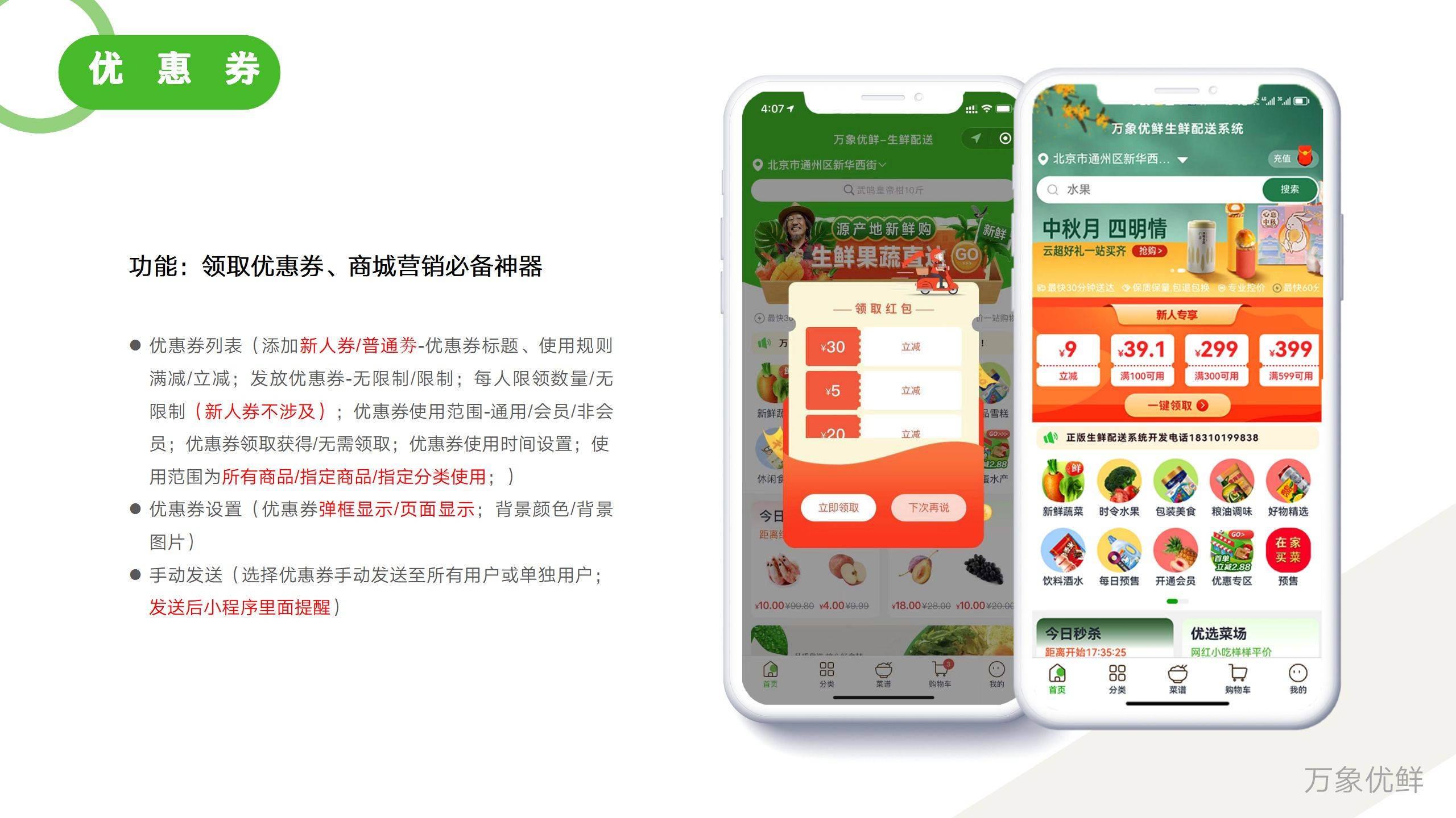 结语:许多管理者其实还是会觉得这个费用难以承受,觉得花来没必要,当然这个是因人而异,使用生鲜配送批发系统其实等于为自身搭建一个在线的零售商城,拓宽自己的销售渠道,也带动企业享受互联网带来的红利。这个费用贵还是不贵其实取决于对于企业的所带来的价值,当然并非运用了系统就一定能带来价值,但利用好的运营手段起步定会与其他没有拥有的企业更优先,享受互联网的红利。
