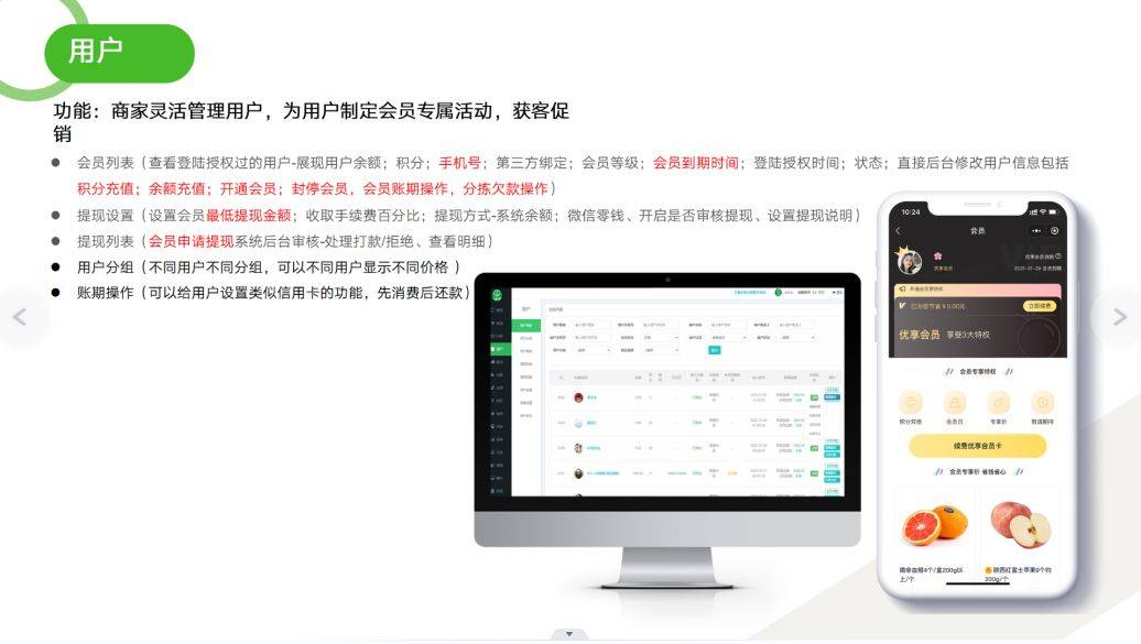 会员卡功能主要就是让会员提前获取现金流,也利用会员权益会员定时重复登录系统使用,比如会员权益中会有做任务获取红包,可以共享会员给好友,拉动其他新用户的加入,其次还有些个性化的会员卡设置,比如会员卡的名称还有会员卡的背景图都可以进行改变,展现会员卡的特殊身份,会员卡也可以让会员线下支付拉动实体店的销售,结合线上线下联动销售。