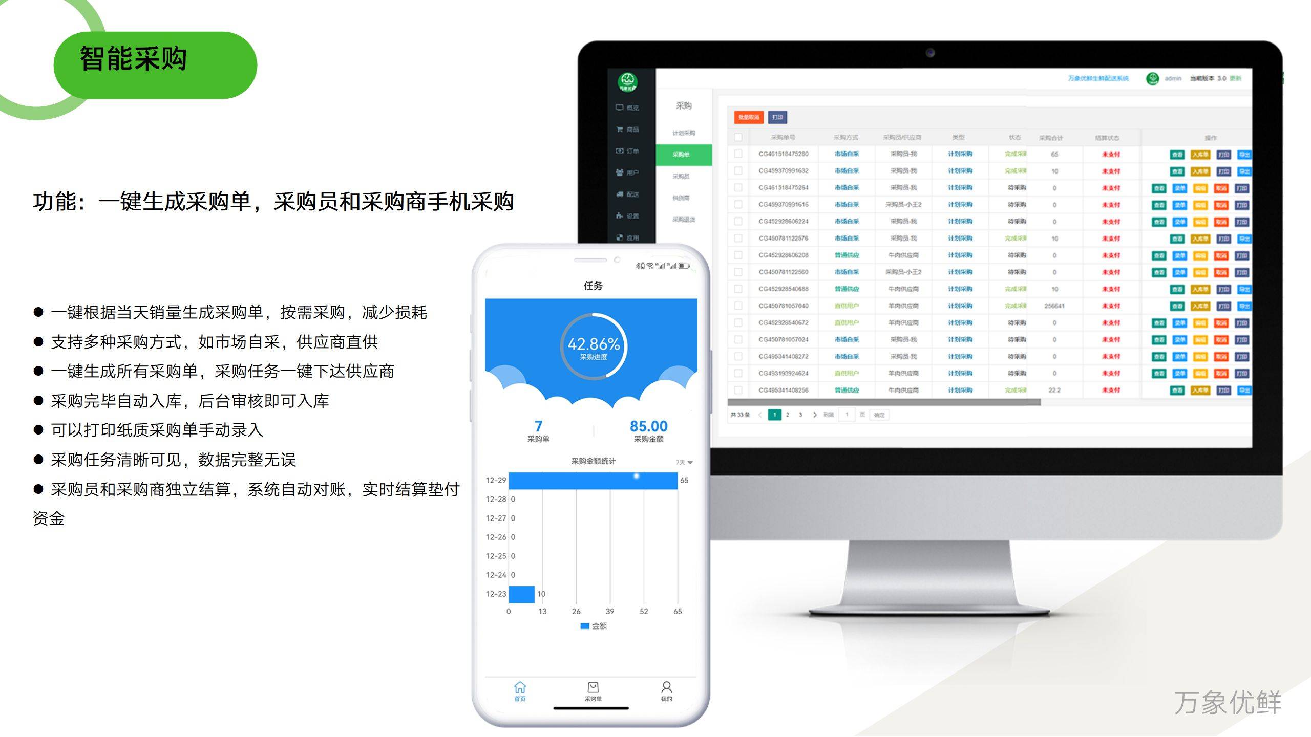 结语:上面所介绍的数字化采购管理的功能其实就是利用生鲜配送系统来做到的,让采购管理更加数字化,达到降本增效还有给予客户更多客户满意度的效果。