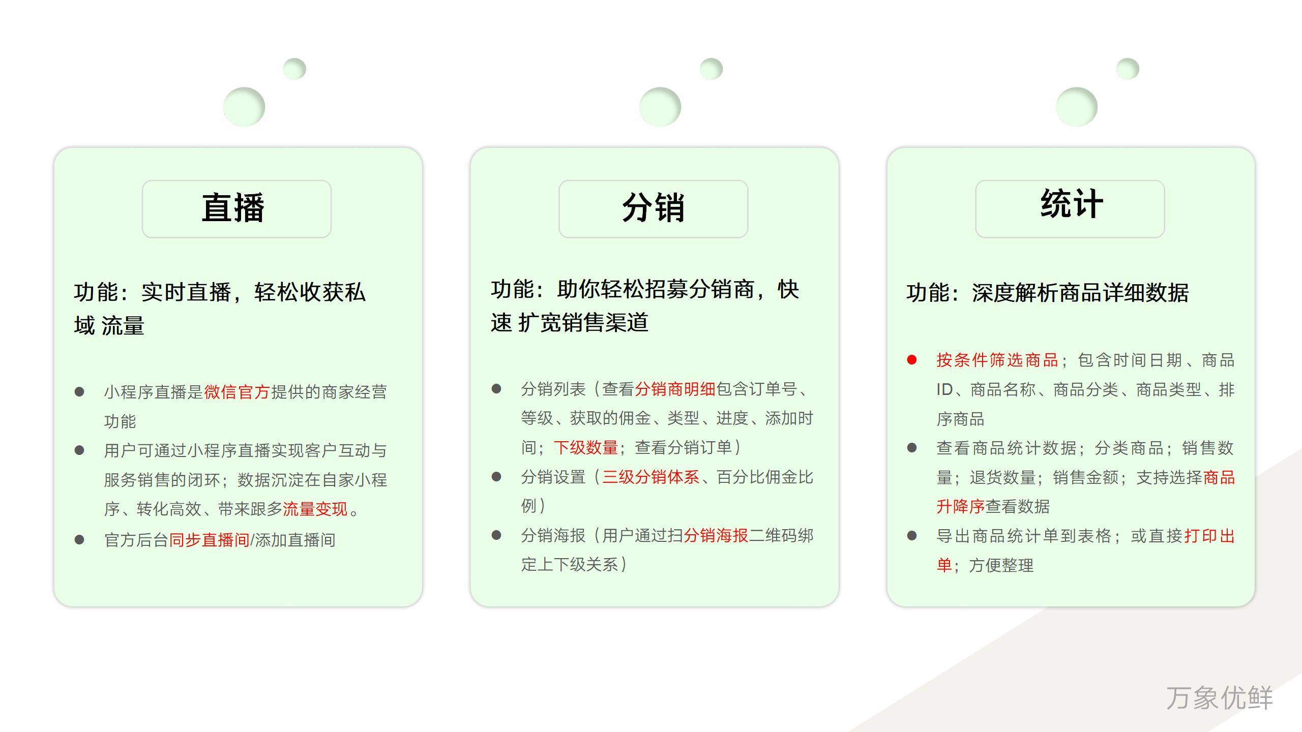 结语:生鲜企业该如何拓宽线上销售网点其实能理解为该如何拓宽线上渠道,用上述的观点其实可以通过微信渠道,短视频渠道还有APP软件渠道完成拓宽,再者微信渠道可以作为另外零散渠道的引流最终的汇集点,得到另外的引流流量红利。加入线上渠道的探索和开发必然能给予企业带来更多的收获。