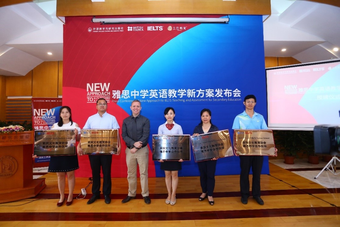会上,北京外国语大学附属外国语学校、苏州外国语学校、石家庄外国语学校、衡水中学、宜宾市翠屏区行知中学校五所学校被英国文化教育协会授予"雅思中学合作伙伴"称号,以这五所学校所代表的全国65家外国语学校将作为雅思中学英语教学新方案的首批试点校。