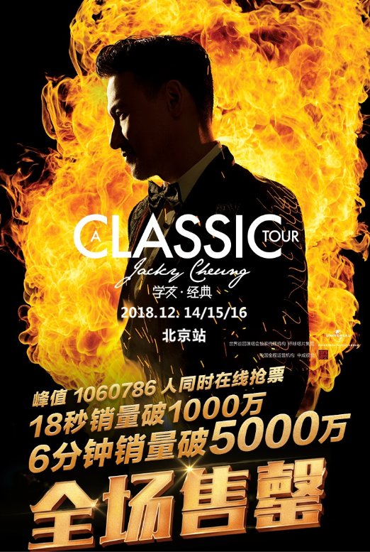 2018年,猫眼作为2018张学友“学友·经典世界巡回演唱会”北京站票务总代理,线上销售18秒销量即破千万,6分钟销量破5000万。
