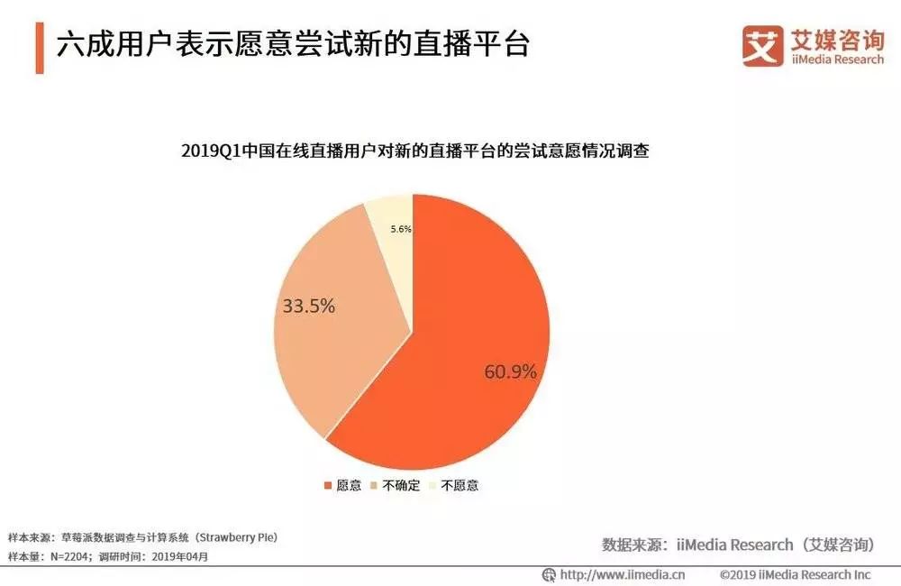 一个关键数据是,用户并不排斥更换直播平台观看,愿意尝试新平台的用户占到了六成: