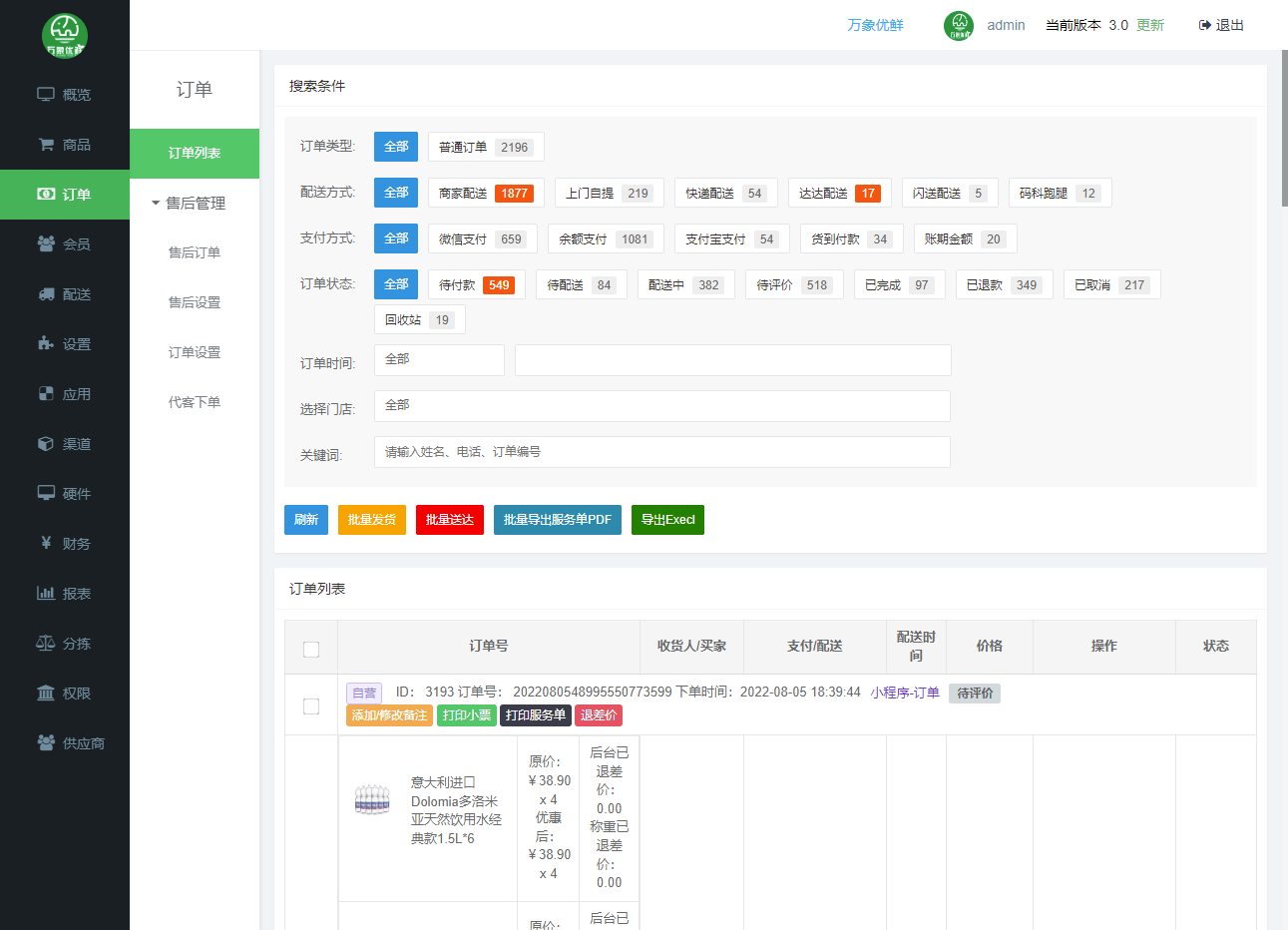 生鲜配送企业的痛点还有繁琐的方面一般在分拣,统计订单,统计库存,财务管理者写方面,像从前的话这些环节都是需要人手去操作的,而且随着企业的不断发展之后,所涉及的数目变多,仅仅凭人手的话是越来越难处理而且错漏会不断冒出来。而且管理效率低下了,运营的效率也降低,那么本来可以收获更多的利润只能眼睁睁地在自身的面前流失。那么生鲜配送系统就能很好的解决这样的问题。