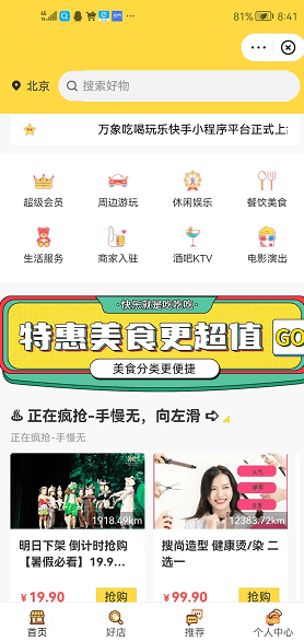 目前更热门运营模式就是利用吃喝玩乐小程序来实行流量的转化。吃喝玩乐小程序中可以将吃喝玩乐的各项服务或者餐饮打包成一个商品的形式可上架到小程序里进行用户的购买,并且再转化的前期也可以是运用到短视频的流量扶持政策来助于辅助吸纳大量的流量创建更多的流量池从而进行进一步的转化,这也是在短视频平台中一个转化成交的一手利器。