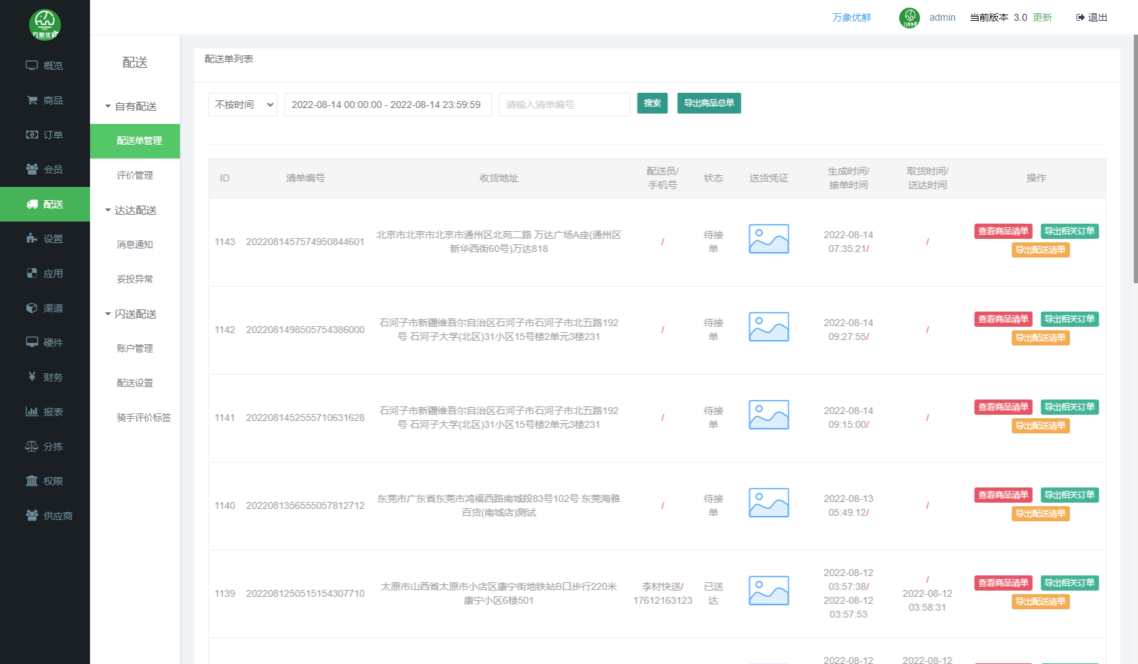 配送功能:不同配送工具下的一个管理,如果是自身的配送的话就需要下载订单针对对应的商品进行搭配去配送,还有另外的模式可以通过第三渠道发送商品信息然后进行发单让配送人员进行接待派送的