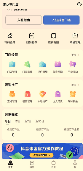 以上都是抖音来客可供生活服务商家使用的功能,涉及的方面也是很广阔,不论是店铺自身的管理设置还是说营销方面的一个推广都是可以进行调整,如果有用过其他的抖音小程序可以会发现这个平台和之前使用的平台的差别还是比较大,官方的平台必然是功能齐全而且稳定性也会比个人开发的抖音小程序要来得好